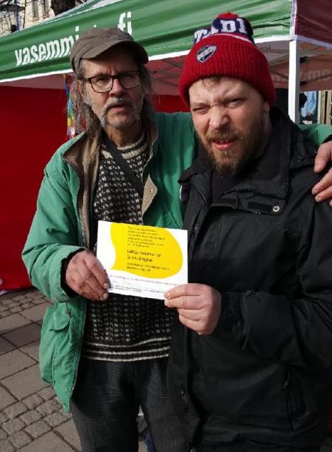 Mikko Nieminen (VF) stöder vår kampanj om lättläst. Med på bilden är även John Pelkonen från Steg för Steg.Läs mera »