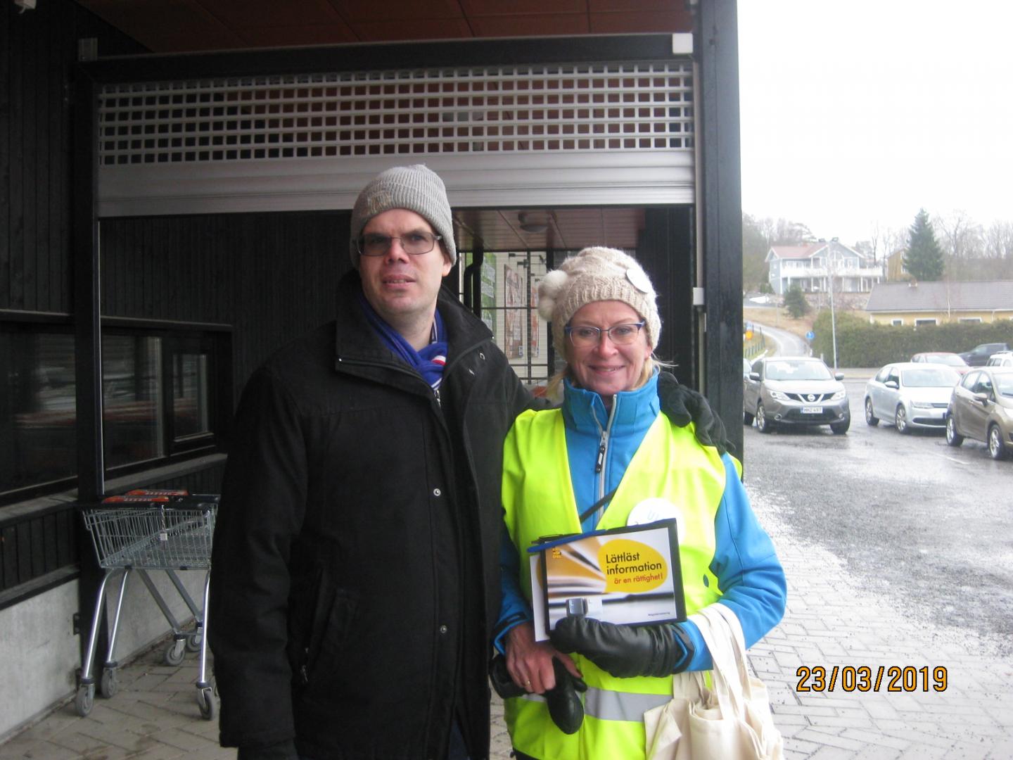 Ulla Achrén (SFP) stöder vår kampanj. Med på bilden är även Mats Nordström från Steg för Steg.